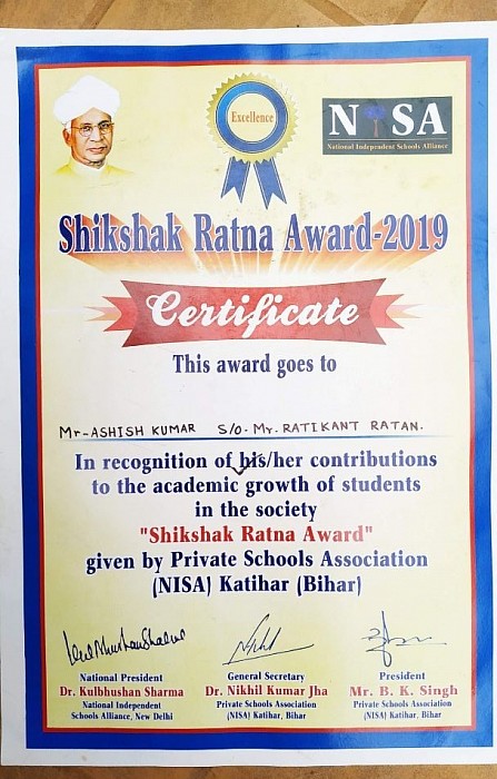 शिक्षक रत्न अवॉर्ड 2019 NISA द्वारा